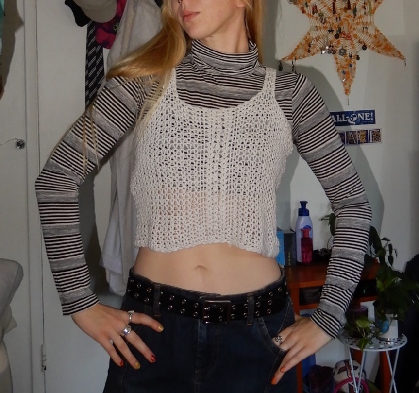 Crochet and knit pieces can weave into your fall wardrobe by styling the breathable piece with a turtle neck or patterned long sleeve t-shirt.
