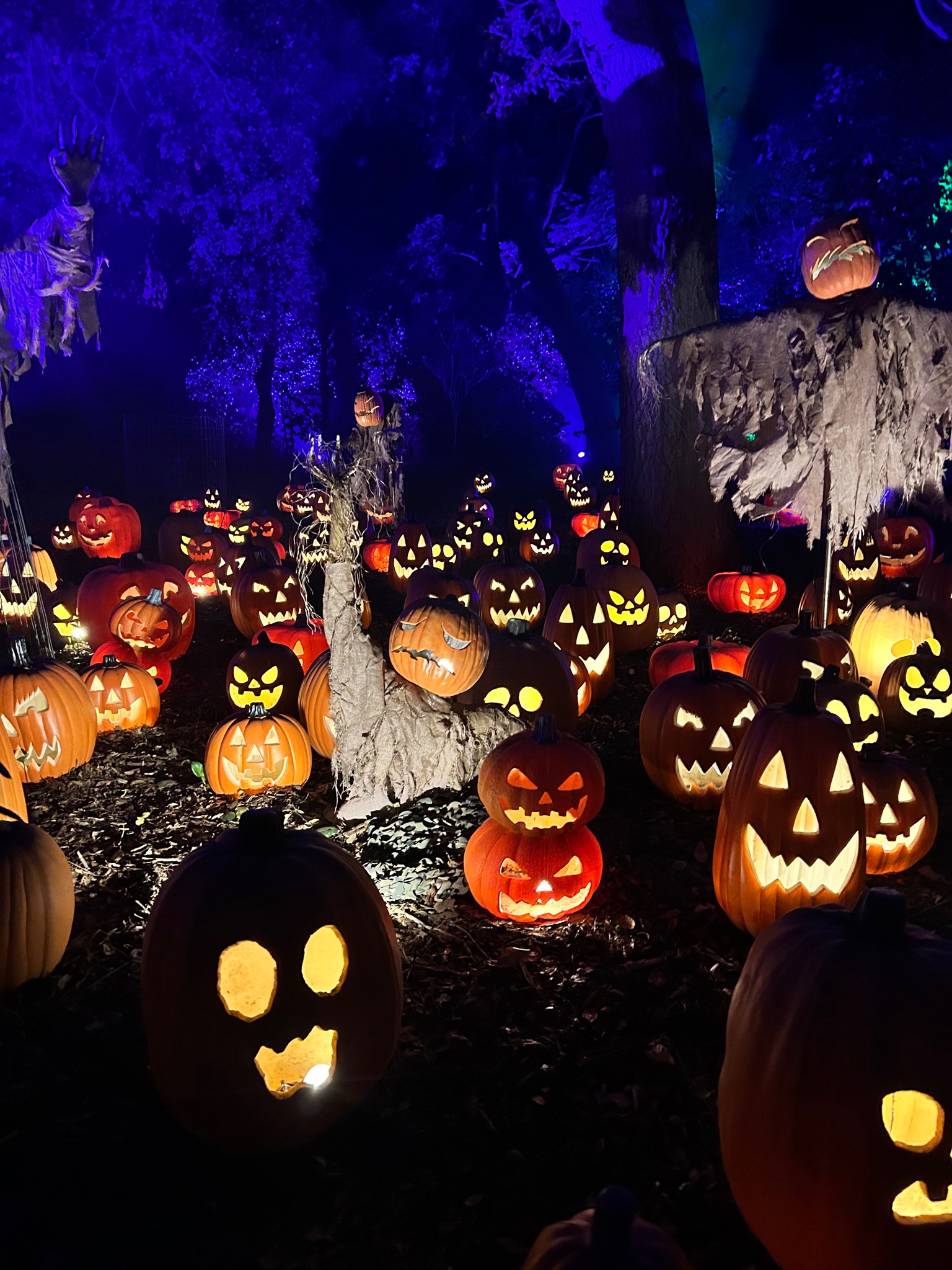 Featuring a blend of pumpkin carvings and Halloween sculptures, Carved immerses you into the world of Halloween. The pumpkin carvings at this exhibit are so intricately detailed; A blend of beautiful art work and the essence of spooky season. In the middle of the exhibit, artists are seen carving pumpkins and drawing artwork in real time. I always love watching artists perform their craft. Each section within the gardens has its own unique concept. I’m so excited to see what this year’s Carved will look like.